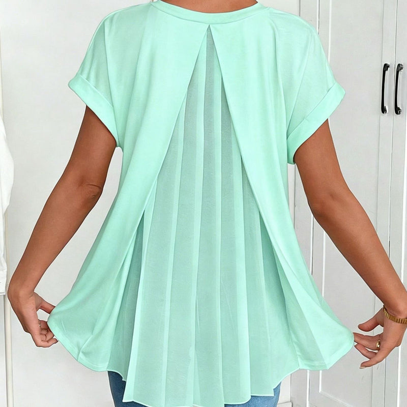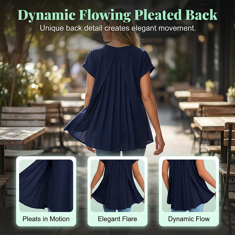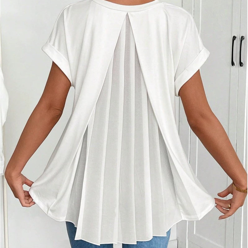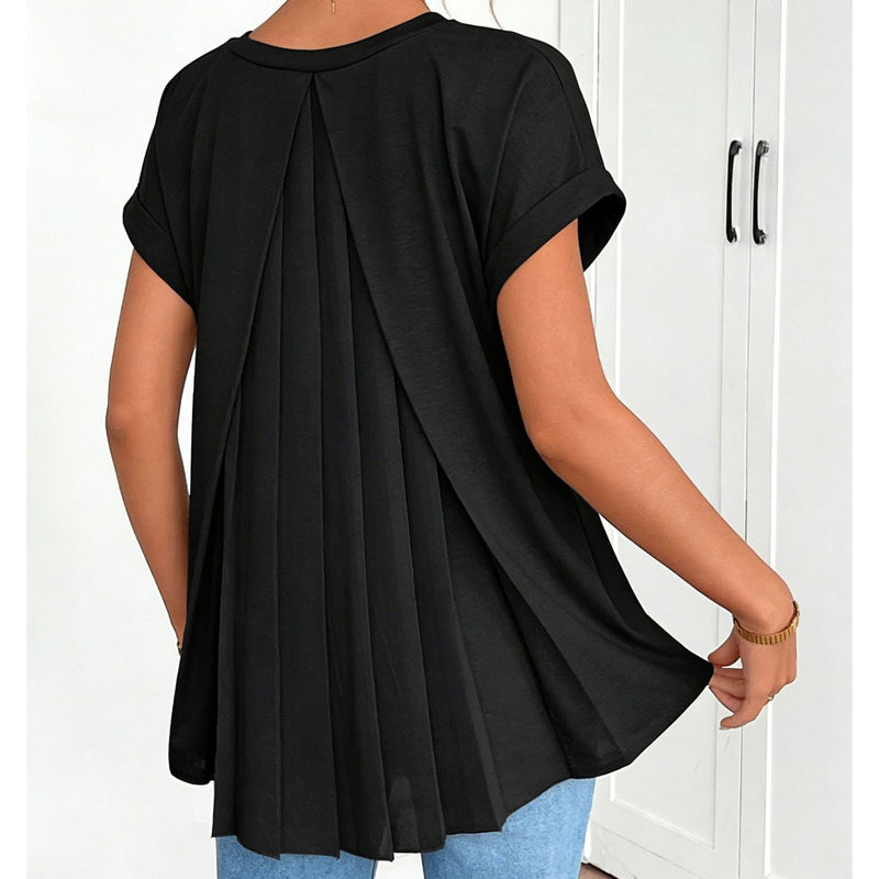 Flowy Short Sleeve Top with Inverted Pleat Back