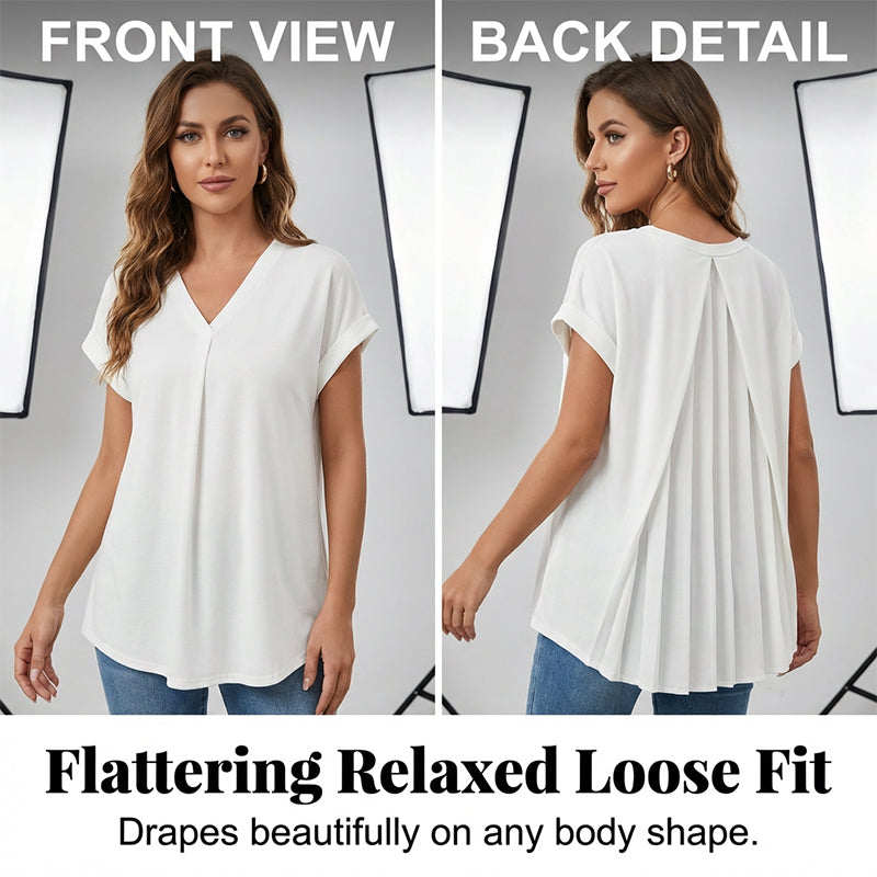 PREMIUM DRAPED CASUAL V-NECK BLOUSE - Upgrade your daily wardrobe with this elegant V-neck blouse. Featuring a stunning pleated back design and premium soft fabric, it delivers all-day comfort and effortless chic style for any occasion.
