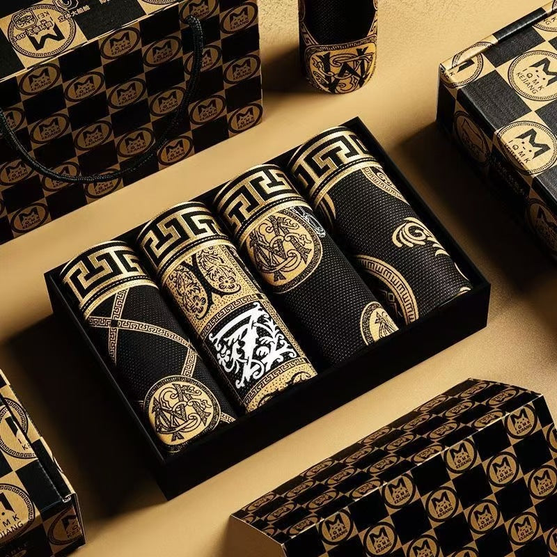 LUXURY BLACK-GOLD AESTHETICS: Features premium detailing with sophisticated patterns (Great Wall/Knight designs) that elevate basic boxer briefs to stylish essentials. The rich color scheme maintains its vibrancy wash after wash.
