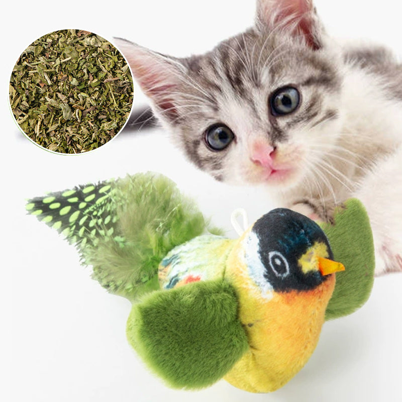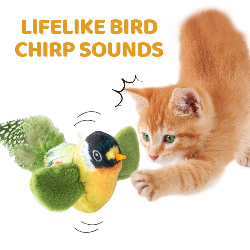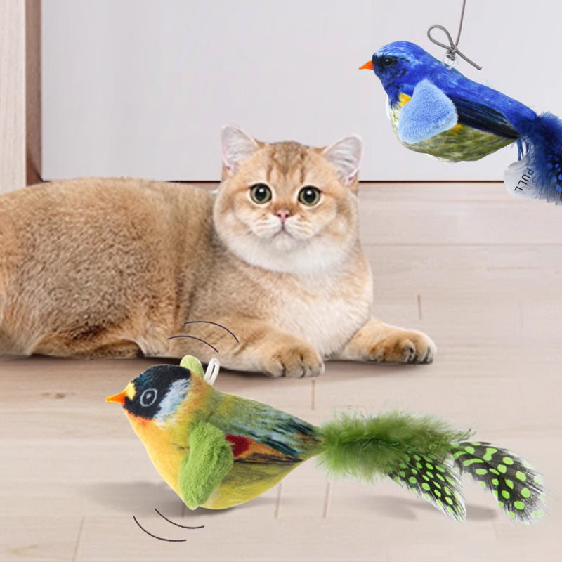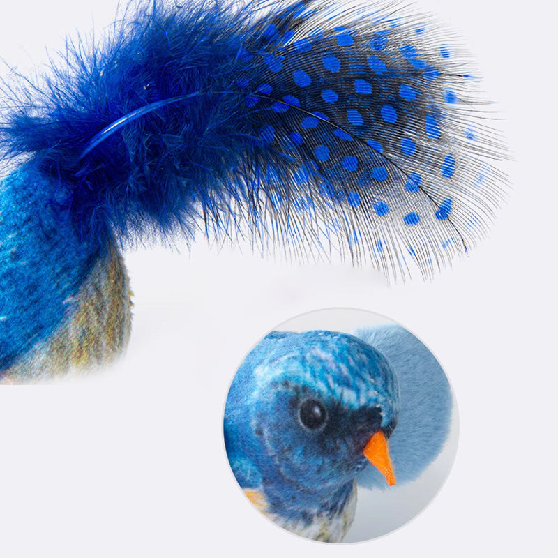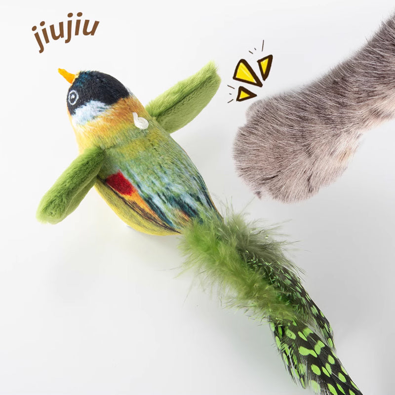 REALISTICKÉ ZVUKY PTÁČÍHO ZPĚVU: Každá plyšová hračka obsahuje zabudovaný zvukový modul, který přehrává realistické ptačí zpěvy a cvrlikání, což vaši kočku pokaždé naláká do hravého loveckého režimu.