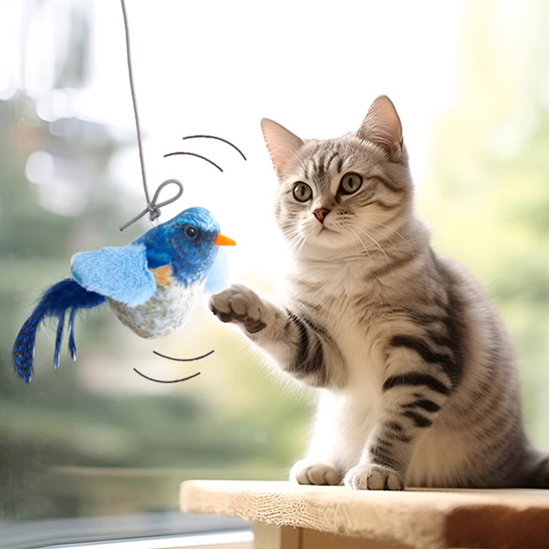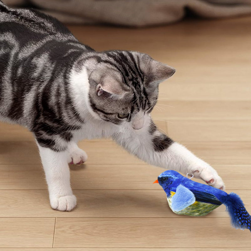 1x Realistická hračka pro kočky s cvrlikajícím ptáčkem