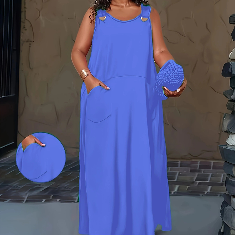 Dámské ležérní maxi šaty bez rukávů s kapsami