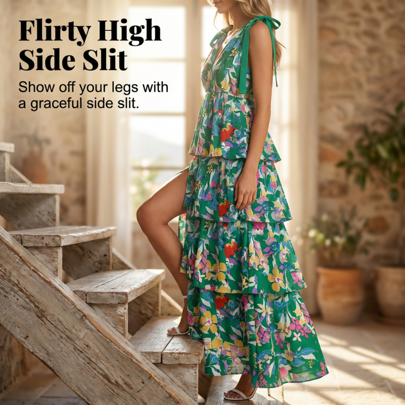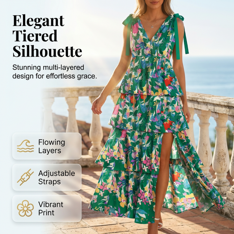 ELEGANTNÍ VRSTVENÁ SILUETA – Kaskádové vrstvy volánků vytvářejí při chůzi krásný pohyb. Tento design dodává objem a fantazijní, ženský šmrnc, díky čemuž je ideální pro jakoukoli zvláštní příležitost nebo neformální výlet.