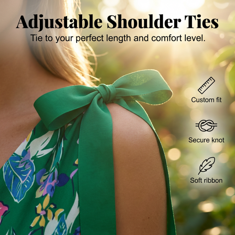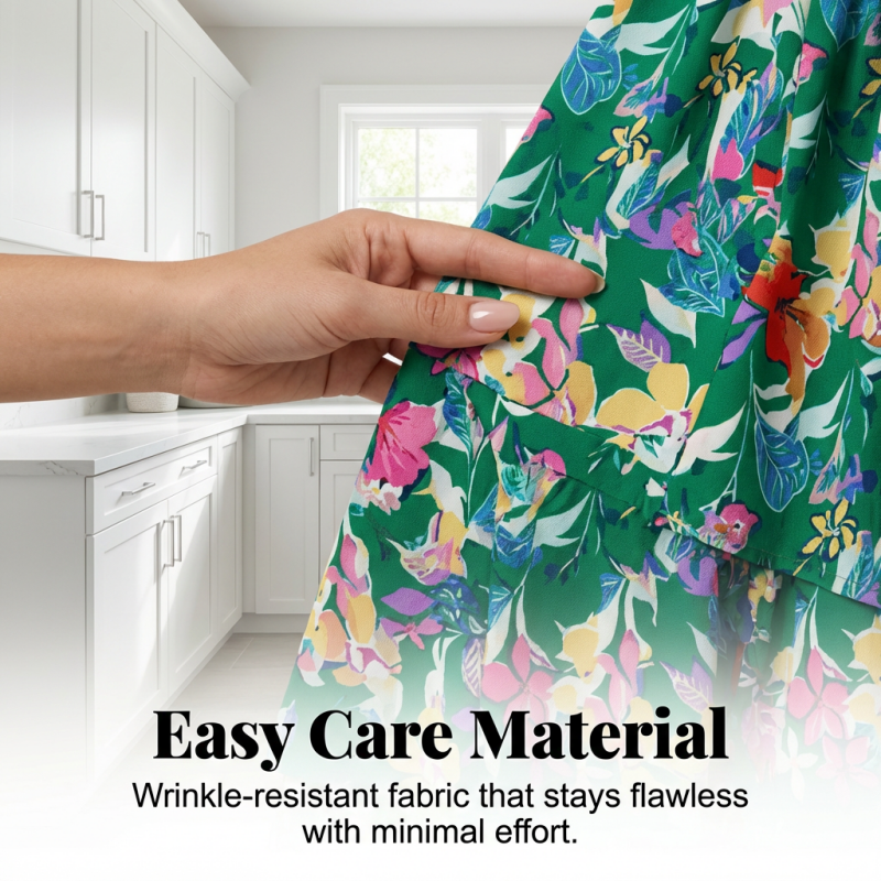 PRODYŠNÁ KVĚTINOVÁ TKANINA – Tyto šaty jsou vyrobeny z prvotřídní lehké tkaniny, která zajišťuje maximální prodyšnost. Živý květinový potisk zůstává jasný, zatímco měkká textura poskytuje celodenní pohodlí v teplém počasí.