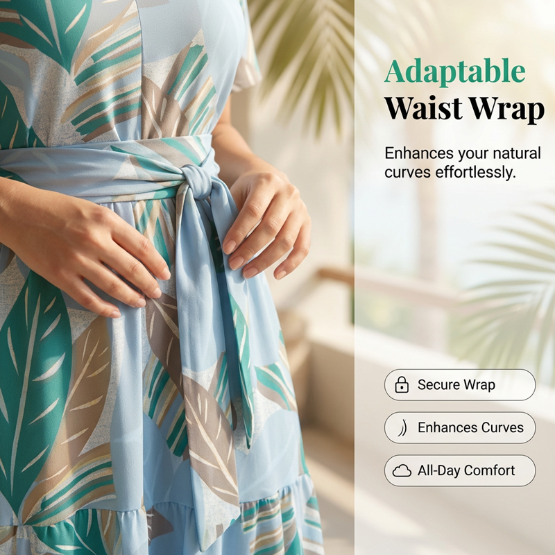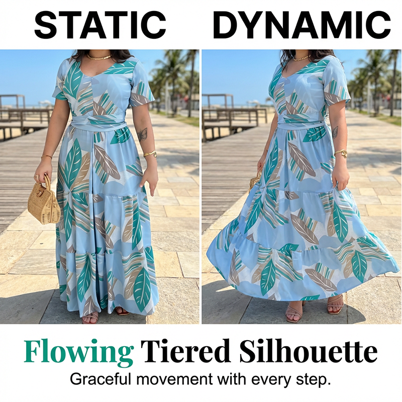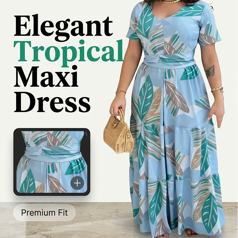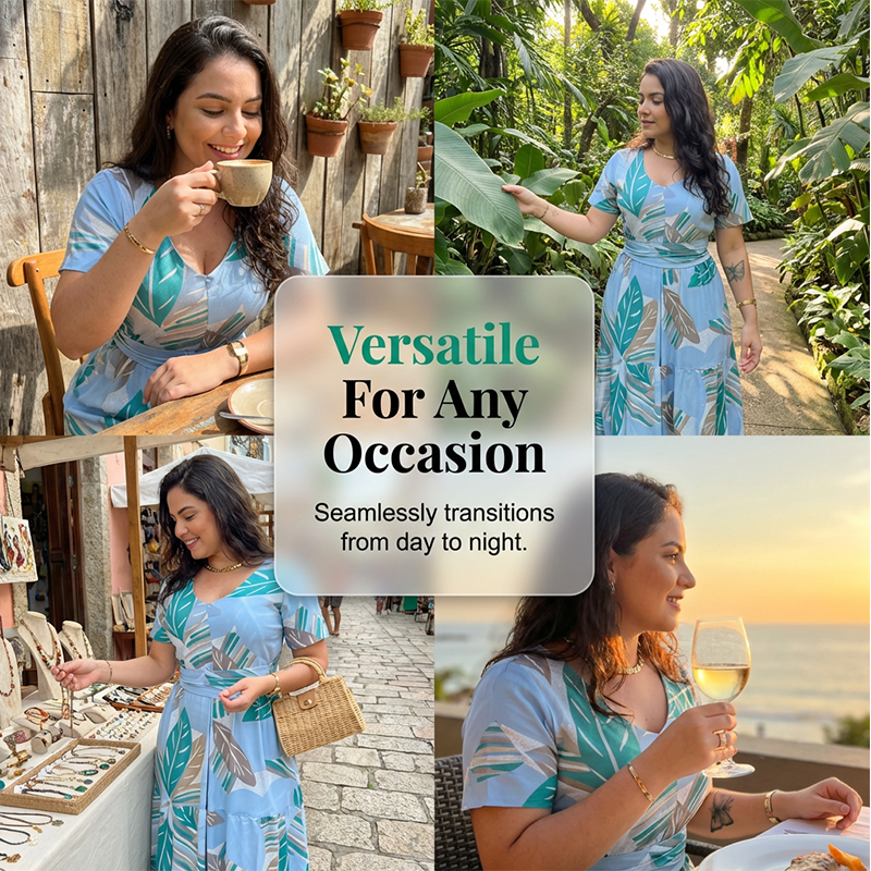 ELEGANTNÍ TROPICKÉ MAXI ŠATY - Vstupte do léta v těchto elegantních tropických maxi šatech. S lichotivým výstřihem do V a plynulou siluetou jsou vaším základním kouskem do šatníku pro teplé počasí.