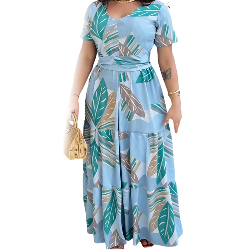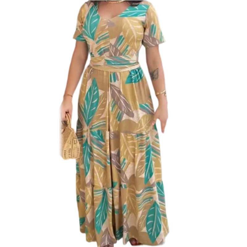 Balíček obsahuje: 1* Dámské volné maxi šaty s listovým potiskem