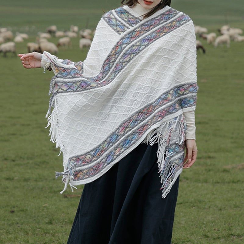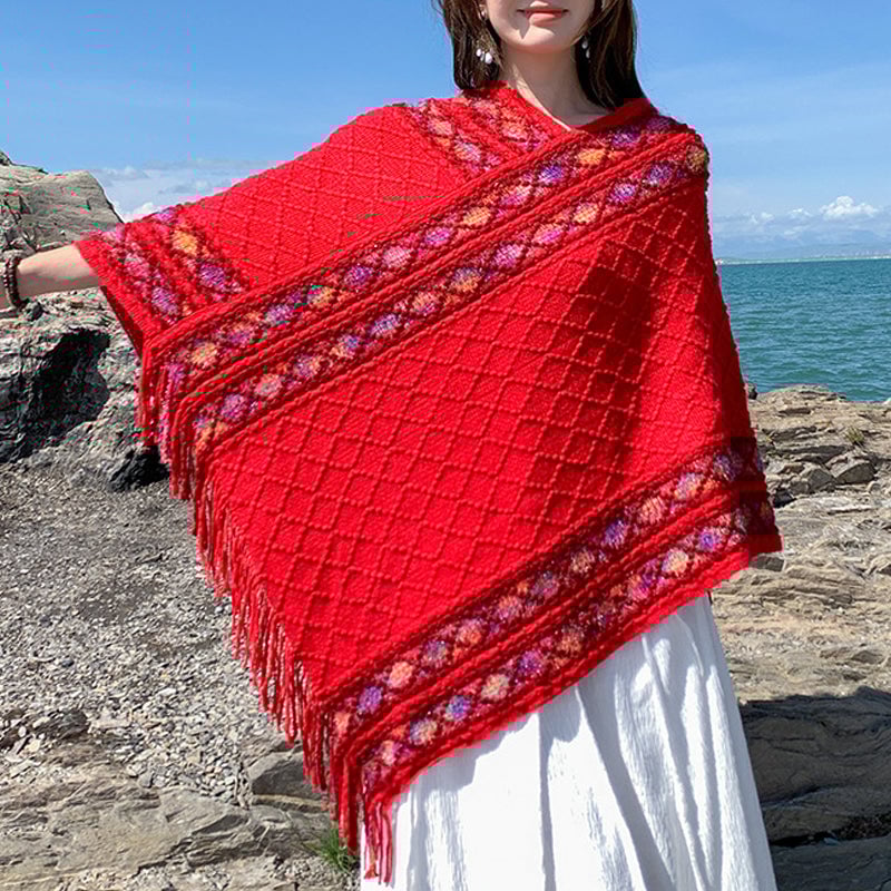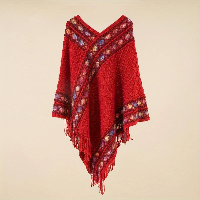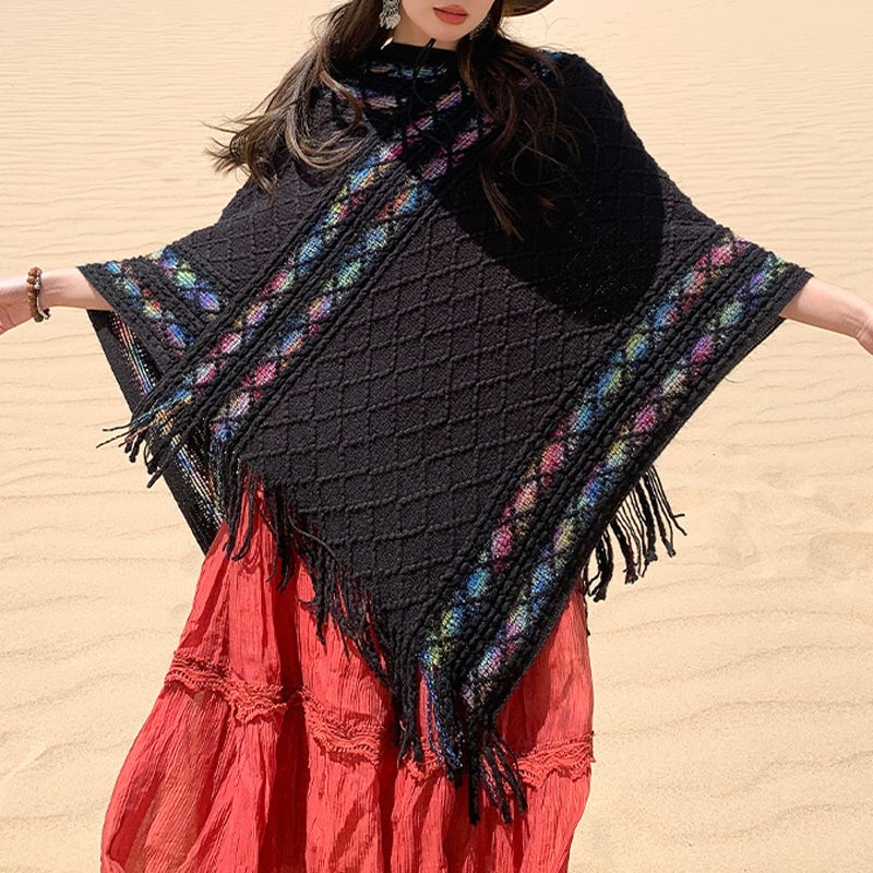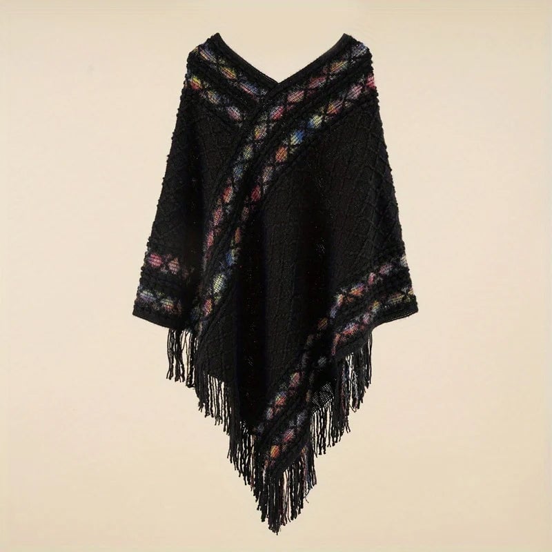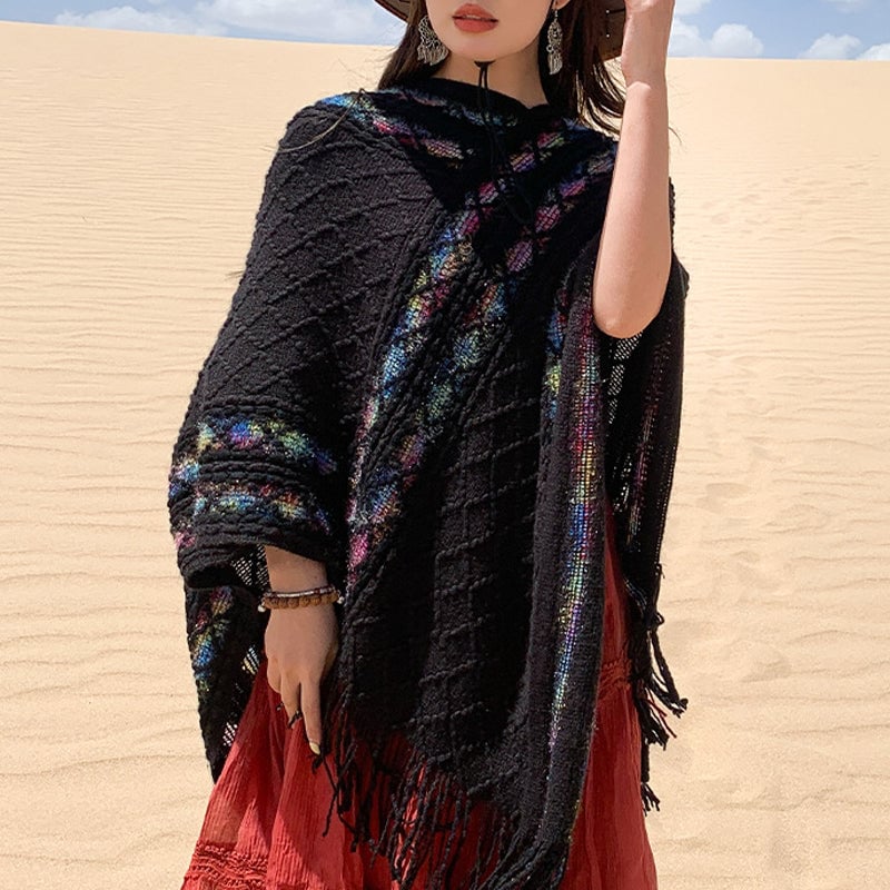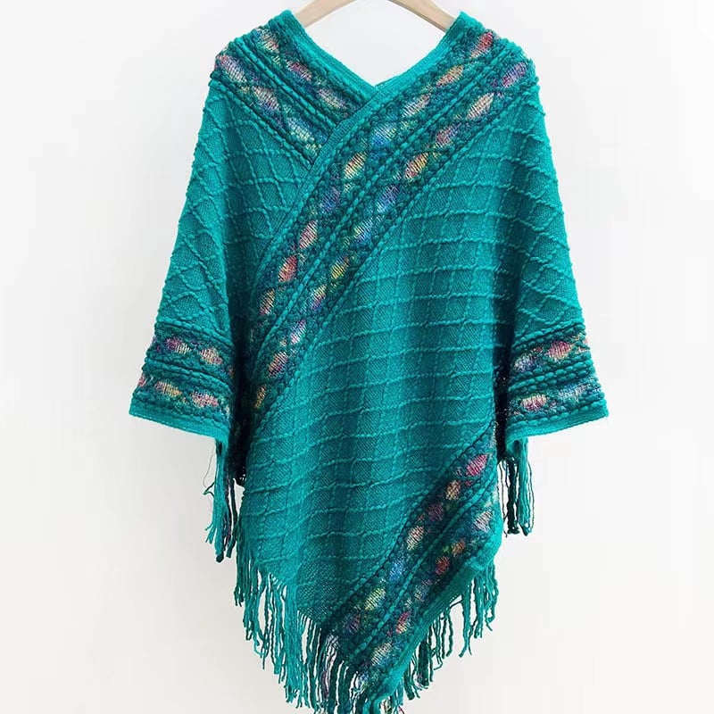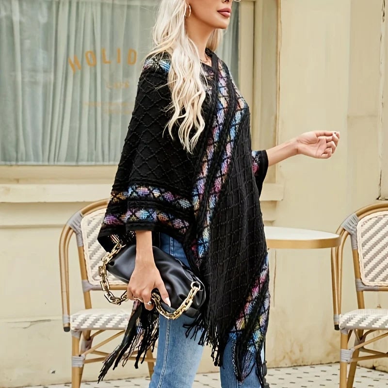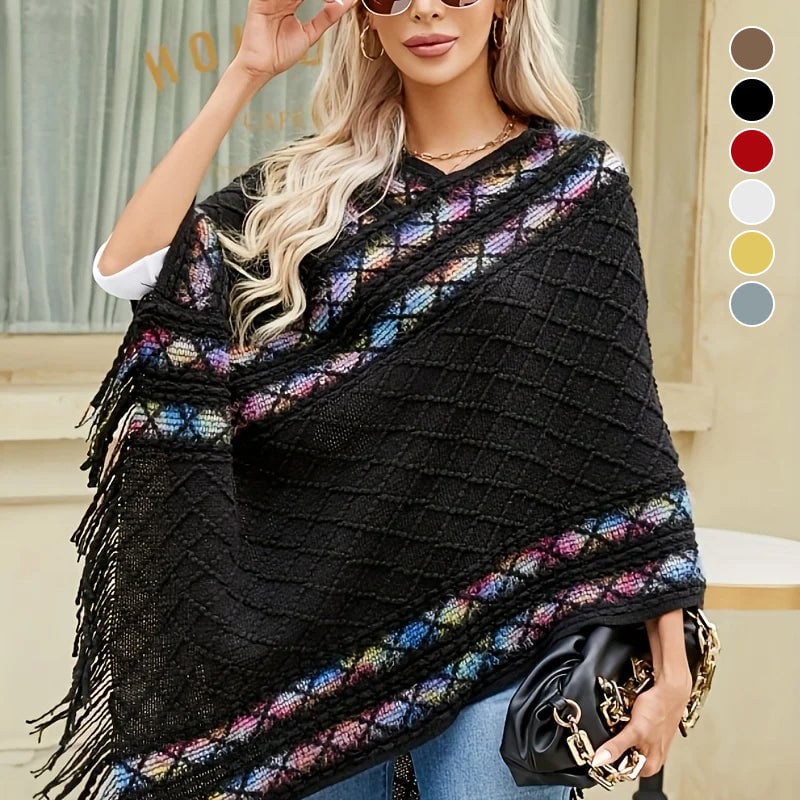 Toto pončo má zajímavý grafický design v sytých barvách. Je k dispozici v různých barvách, takže si můžete vybrat tu, která nejlépe odpovídá vašim preferencím a vašemu stylu.