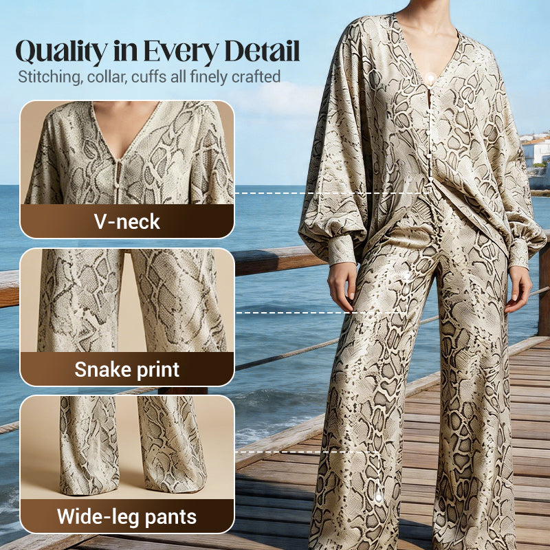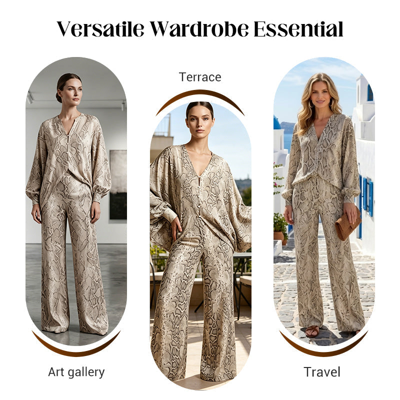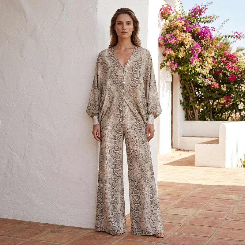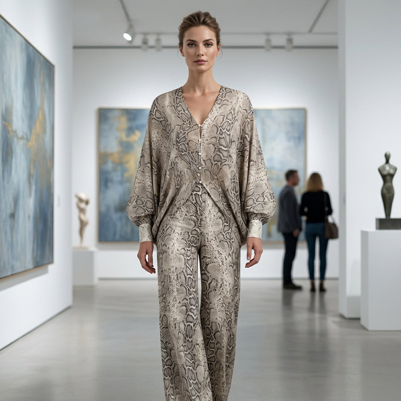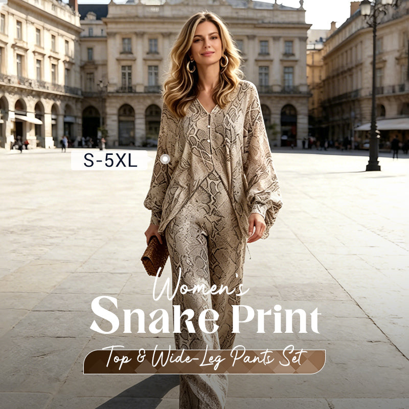 🌹 SLEVA 50%! 👗 Dámský set – top s hadím potiskem a široké kalhoty – výrazný potisk, volný střih a bezstarostný styl ✨