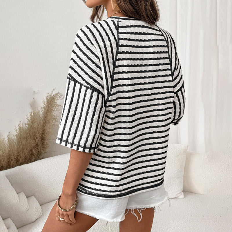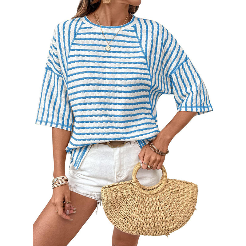 Obsah balení: 1 * Dámské pruhované tričko s volným střihem