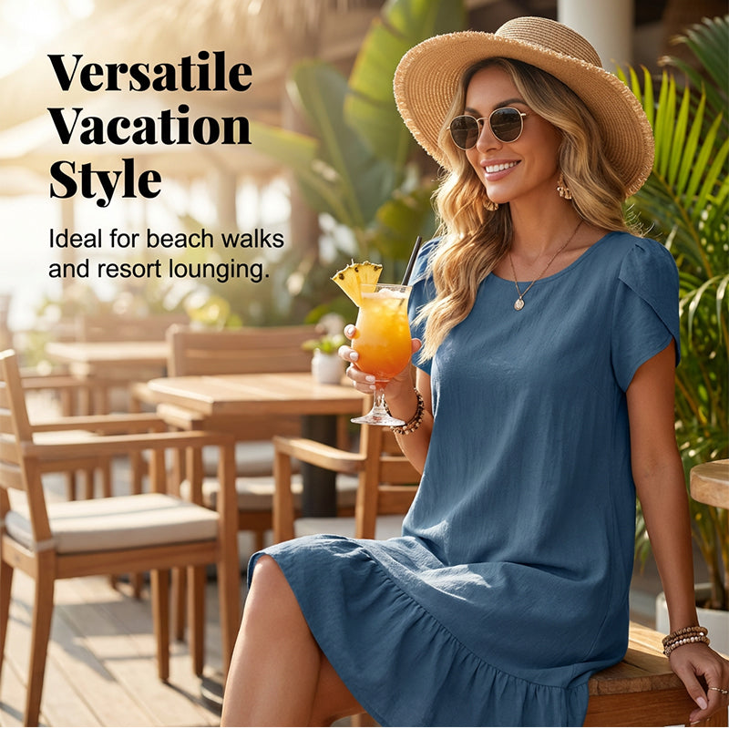 Obsah balení: 1 ks dámských letních ležérních šatů s volánkovým lemem