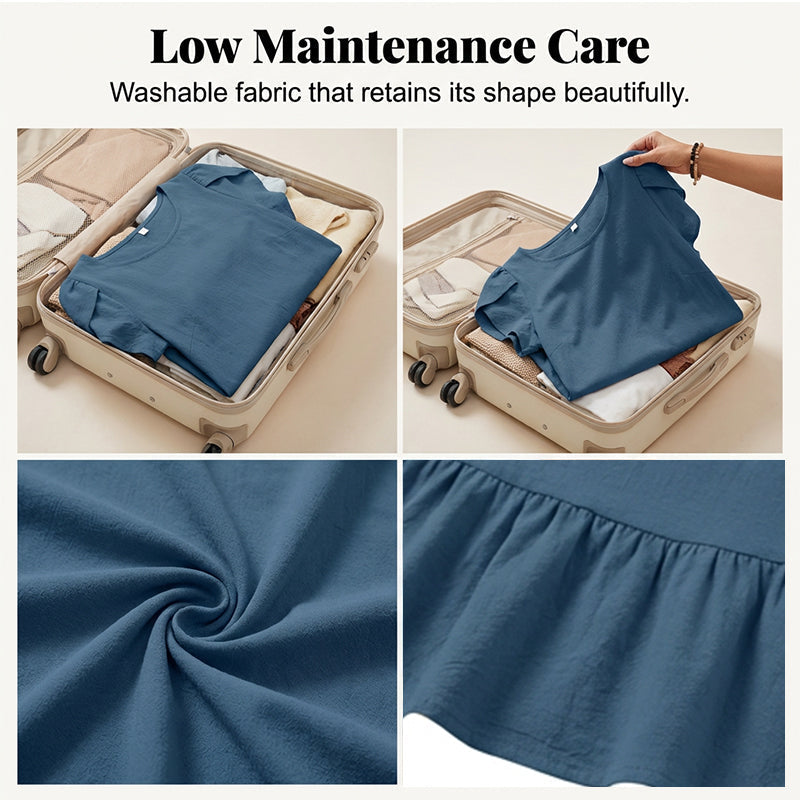 LEHKÁ POLYESTEROVÁ TKANINA - Tyto šaty jsou ušity z prodyšného polyesteru, díky čemuž v nich zůstaneš v pohodlí a nebude ti horko. Navíc se nemačkají a snadno se o ně pečuje, což z nich dělá ideální volbu na cestování.