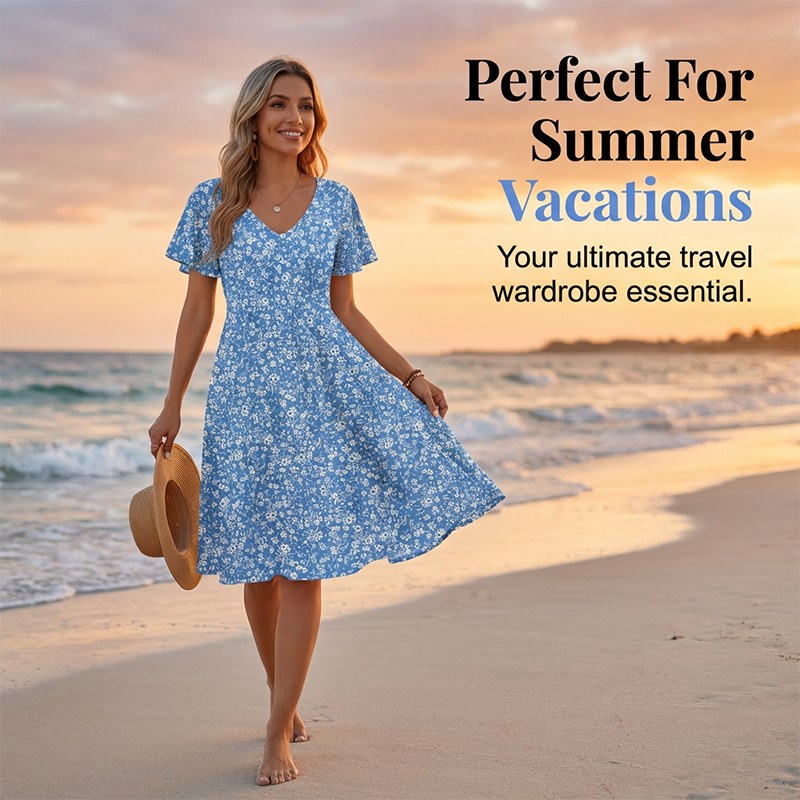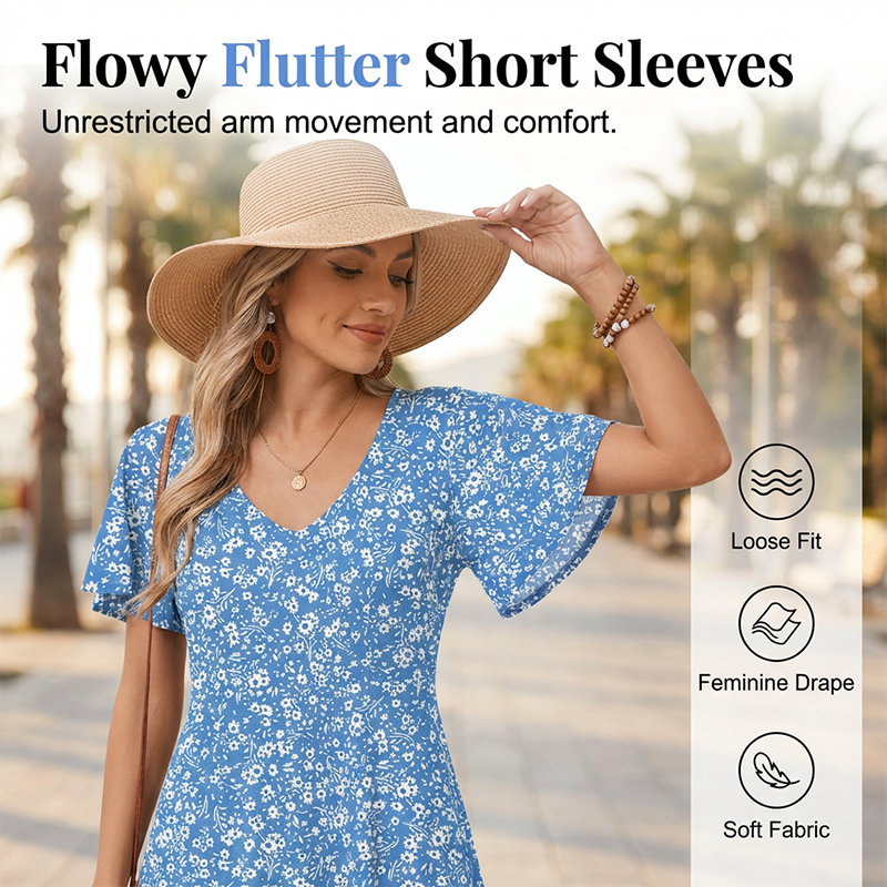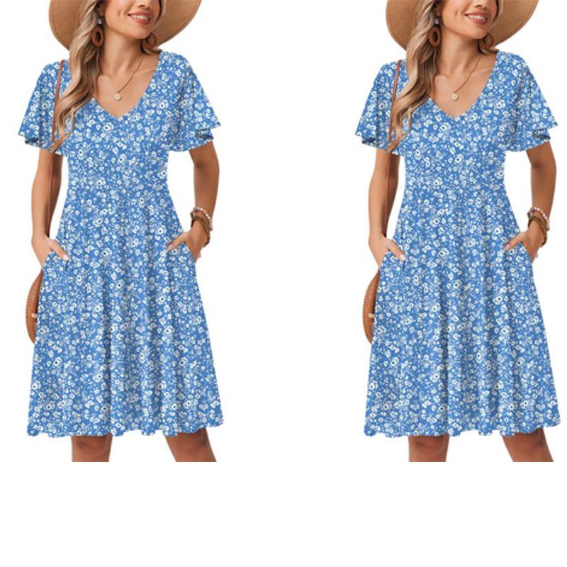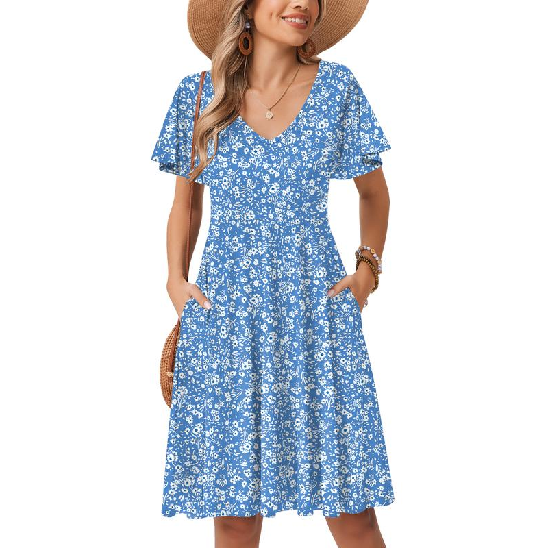 🎁Novinka se slevou 41 %💥Dámská šaty s výstřihem do V a květinovým potiskem