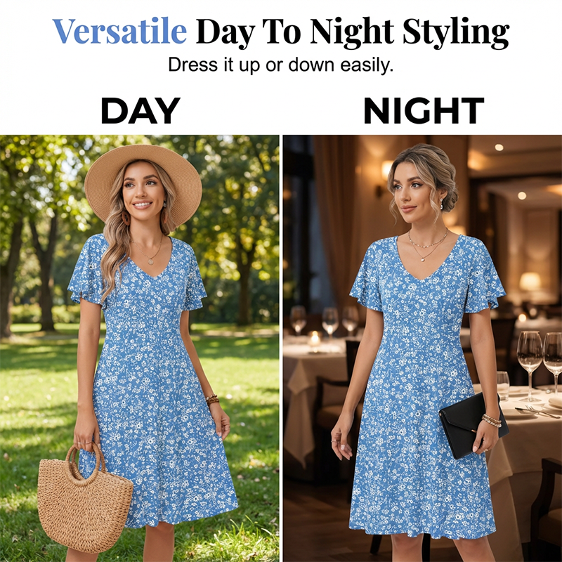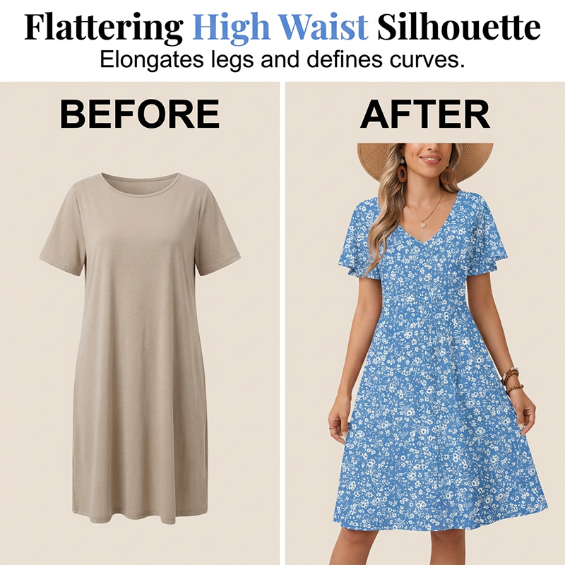 ELEGANTNÍ DESIGN S VÝSTŘIHEM DO V - Klasický výstřih do V dodává šatům nádech sofistikovanosti, dokonale rámuje váš obličej a klíční kosti. Poskytuje ideální základ pro vaše oblíbené jemné náhrdelníky.