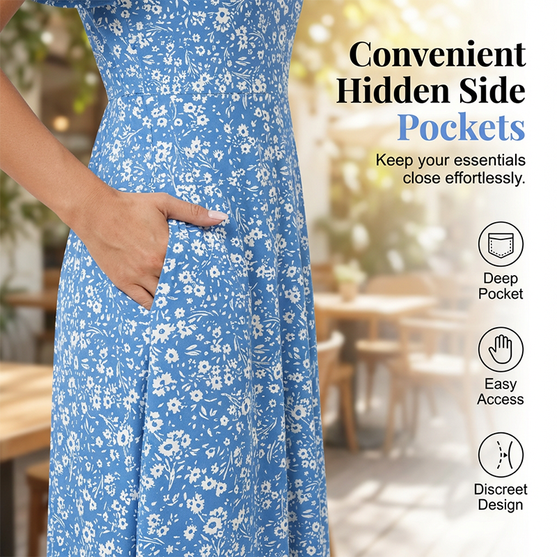 PRAKTICKÉ SKRYTÉ BOČNÍ KAPSY - Šaty jsou navrženy s důrazem na praktičnost a obsahují hluboké skryté boční kapsy. Ideální pro uložení telefonu, klíčů nebo jen pro pohodlné odložení rukou.
